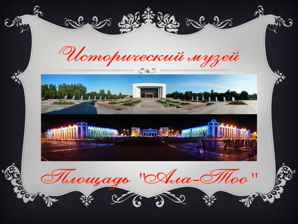 - Государственный исторический музей. В этом музее собраны экспонаты, которые представляют, целую эпоху кыргызского народа. В музее имеется собрание подарков от президента Аскара Акаева.